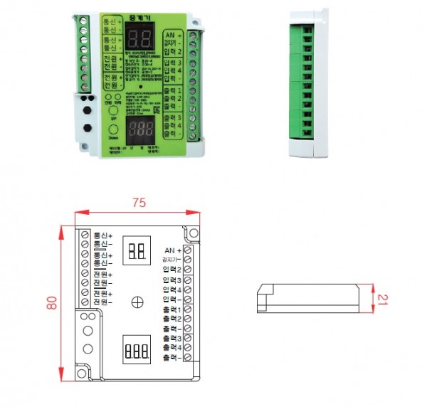 | 제품특징 | 아날로그 감지기 최대 100개 연결 가능 UP & DOWN 물리버튼을 통한 Address 부여 2개의 Display를 통한 중계기 Address 및 감지기 Address 각각 확인 가능 |