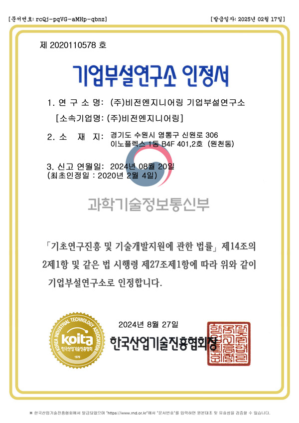 > 기술개발 및 인증 > 기업부설연구소